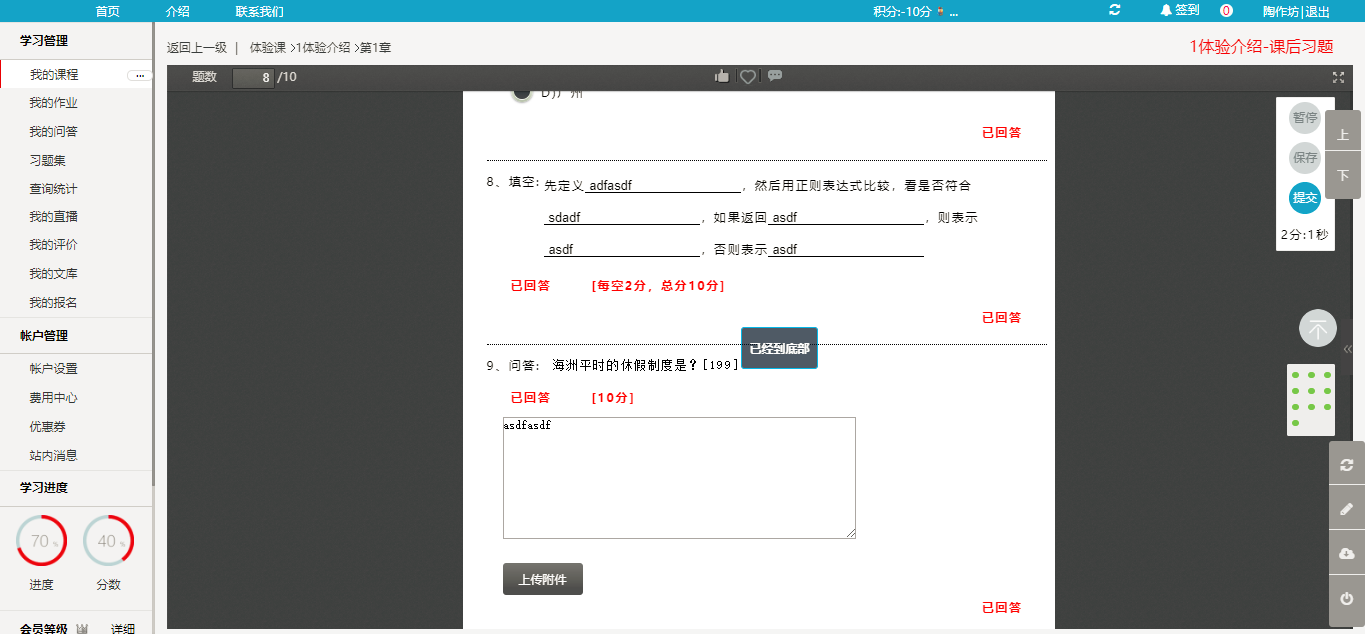 不需要安裝任何軟件,無論出題,答題,參考答案直接上傳附件表達(dá),簡單的將您工作中實際材料應(yīng)用到學(xué)習(xí)中來...提高效率。