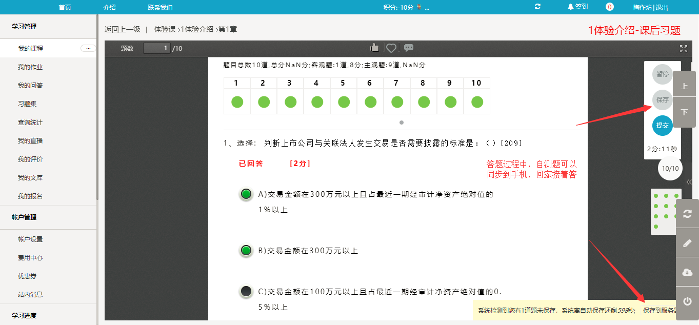 自測卷子,系統(tǒng)允許同步考題到不同設(shè)備,回家路上可以接著答題。到了公司再切換到公司電腦,到家切換到家里電腦,路上用手機,是您必備的備考利器。