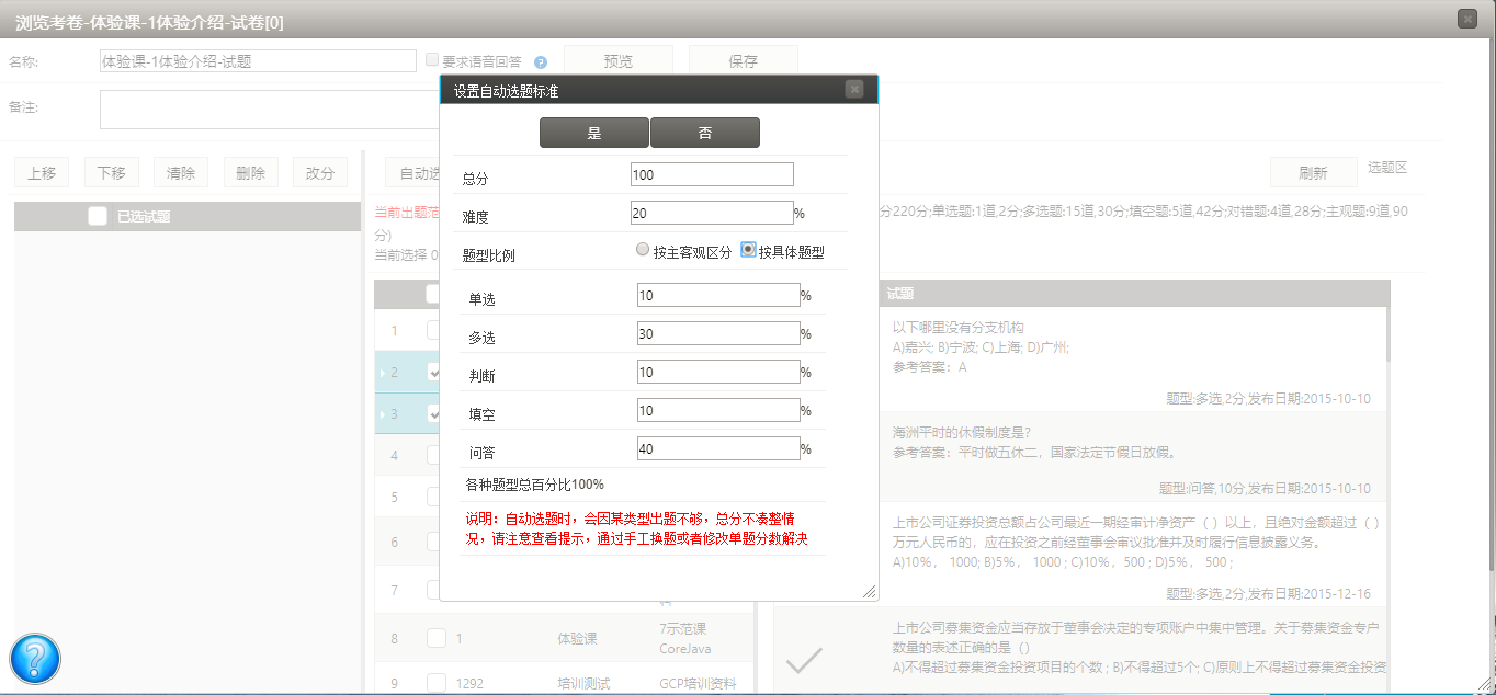 靈活的組卷,可以隨機(jī)出題,也可以導(dǎo)入指定的試卷